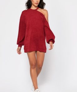 Carmen Cold Shoulder Cutout Mini Dress - Red