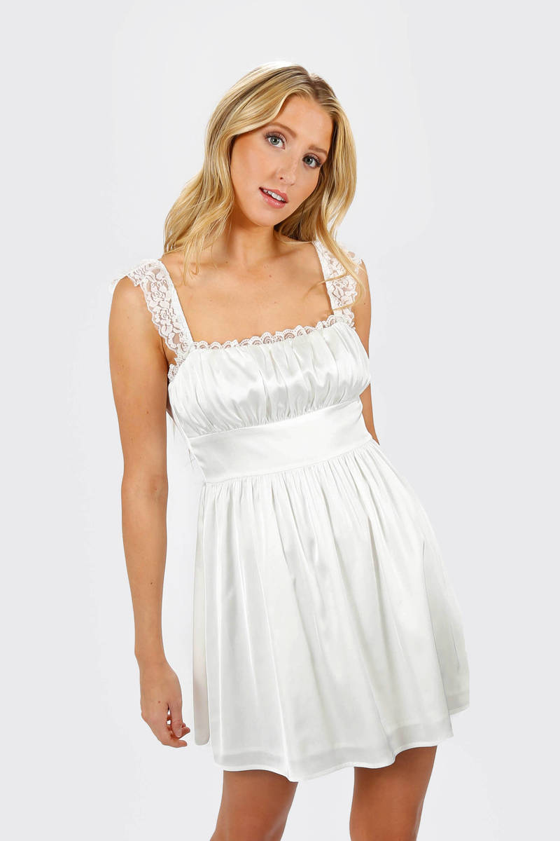 Saige Ruffle Ruched Mini Dress – Off White